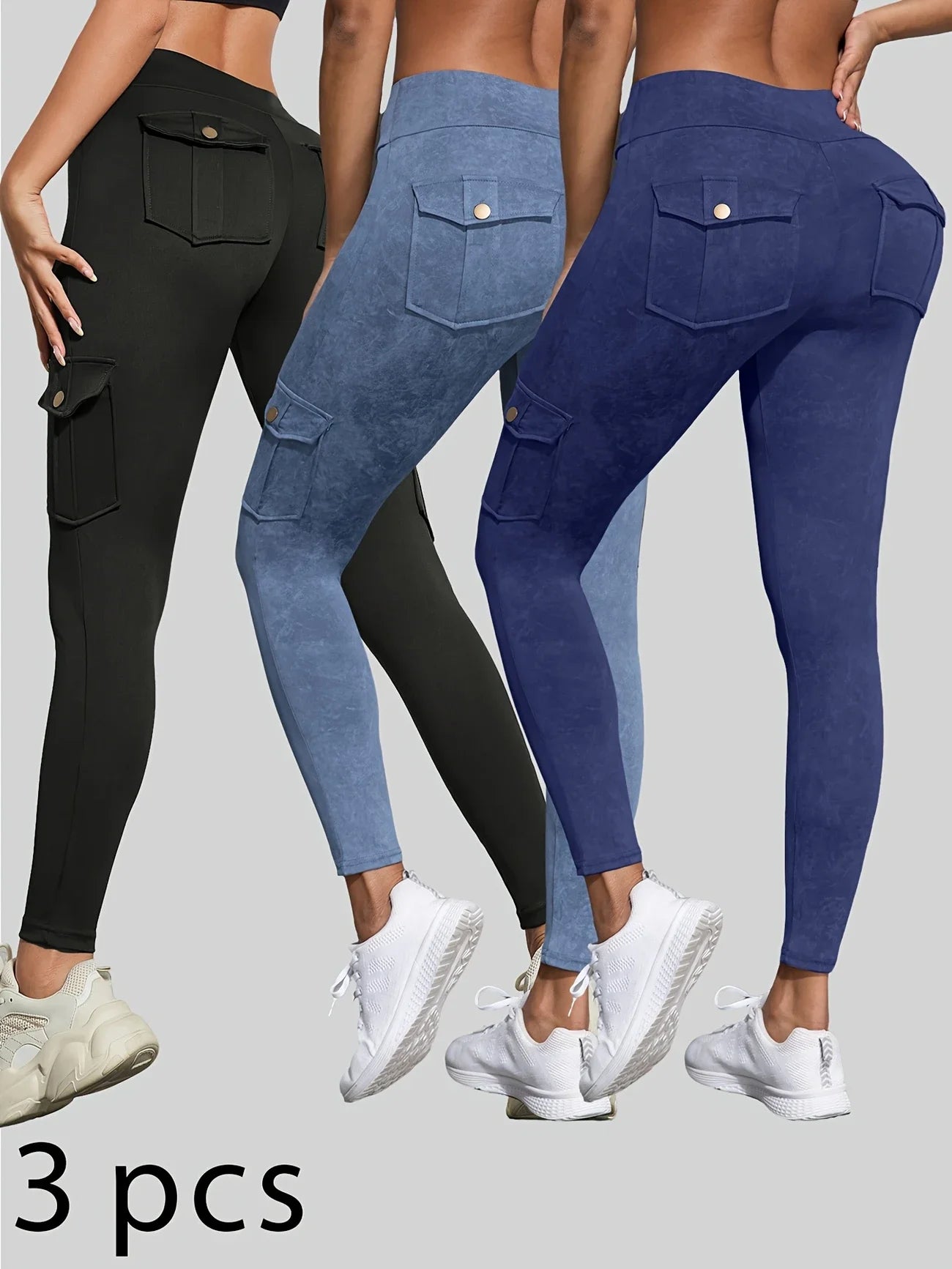 Leggings 1/3 PCS Washed Print Work Pocket Women Leggings Elastic Butt Lifting Fitness Tights 2025 New Athletic Pants Fashion Streetwear