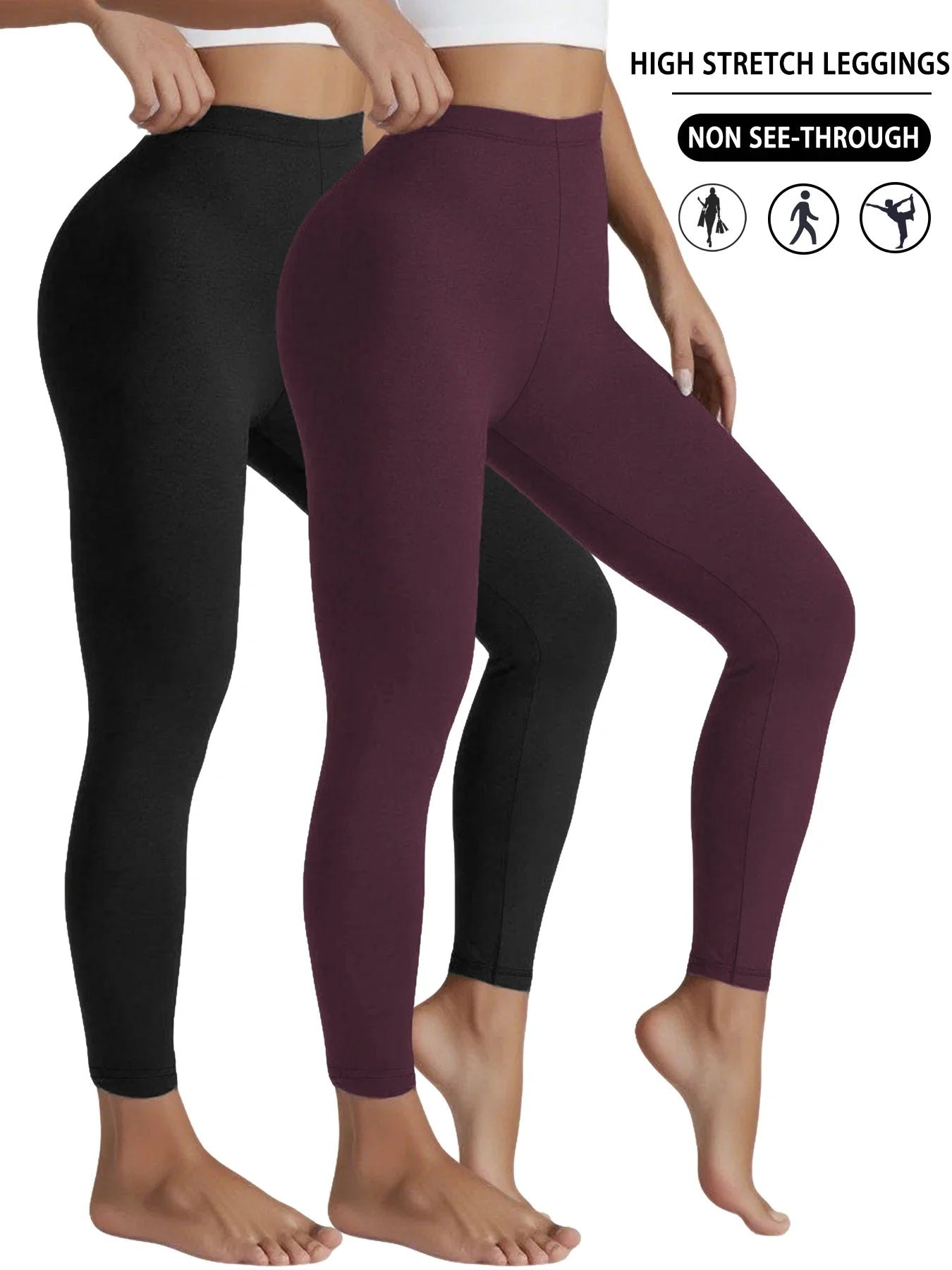 Leggings 2 Pack Women's Super Soft Leggings High Elasticity No See Through Workout Yoga Running Athletic Push Up Gym Fitness Leggings