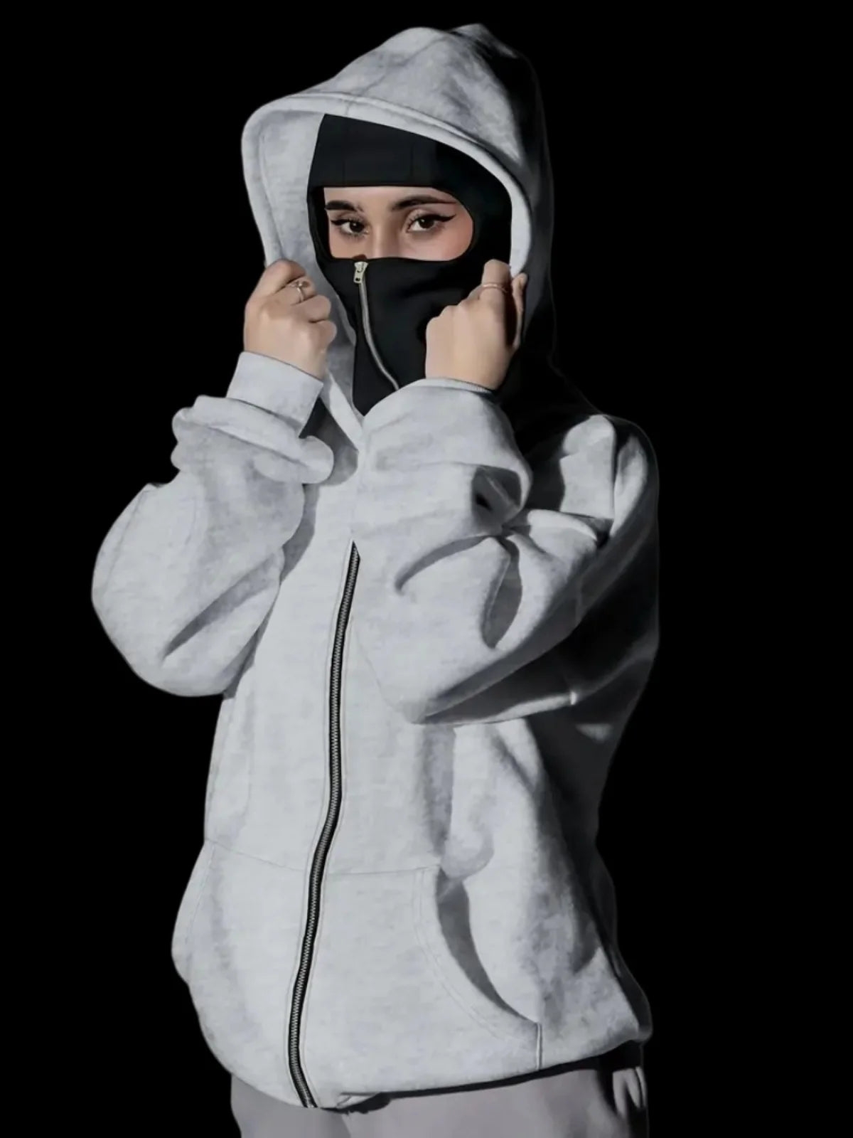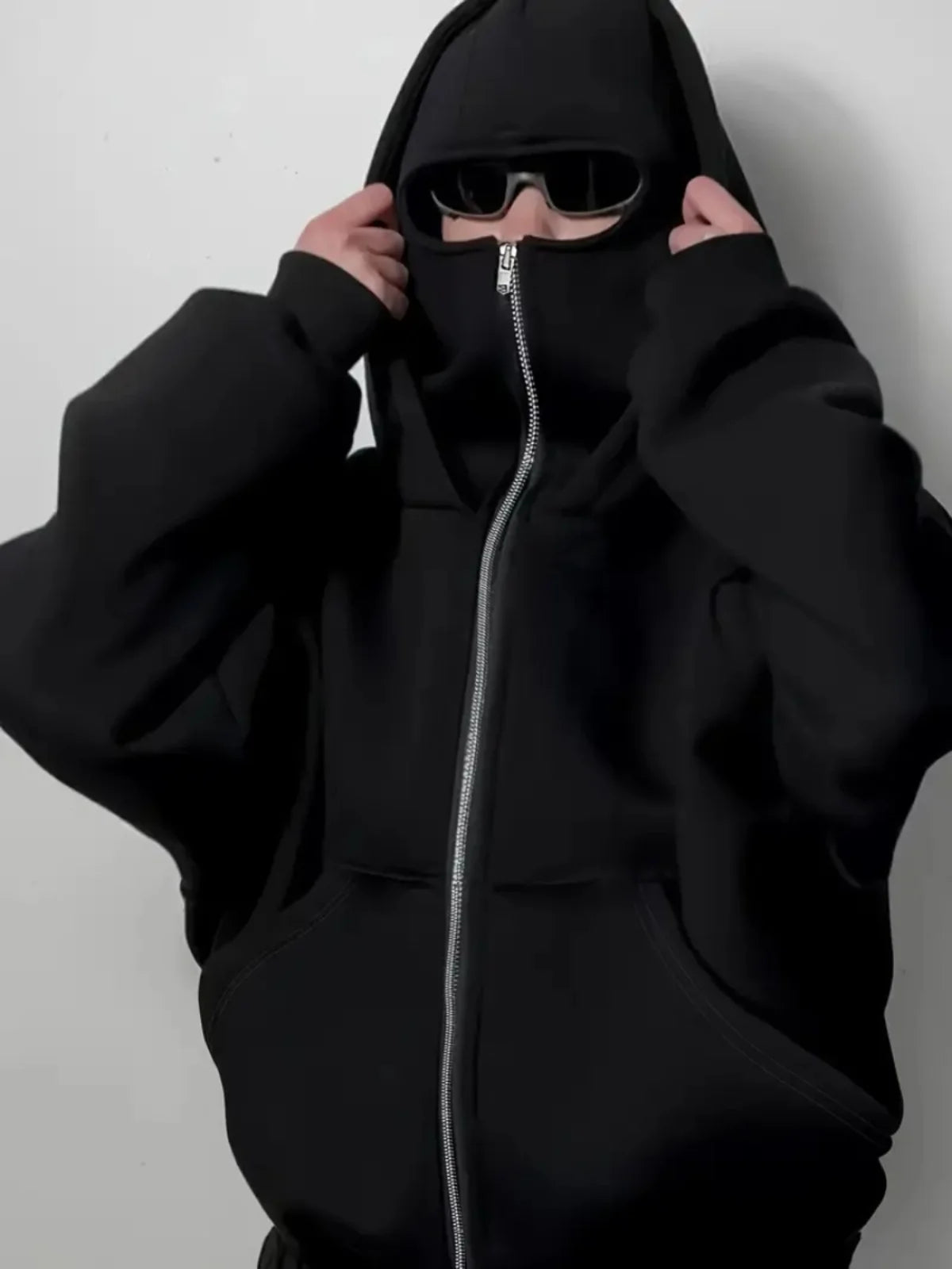 JUMPER Men's Ninja Hooded Loose Y2K Sport Shirt, Street Loose Casual Masked Sweatshirt Windproof Double Hoodie