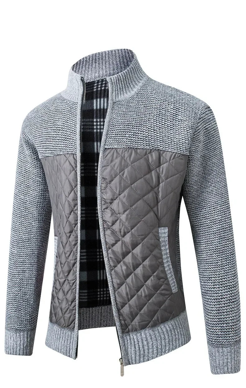 Men's Jacket Slim Fit Stand Collar Zipper Jacket Men Solid Thick Warm Jacket Men Sweater