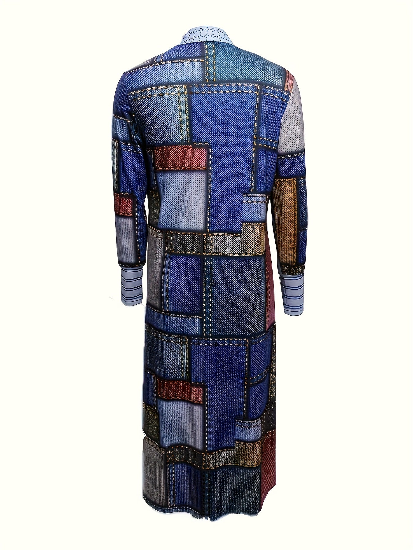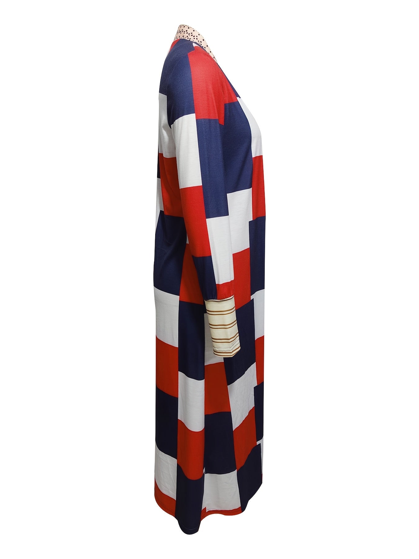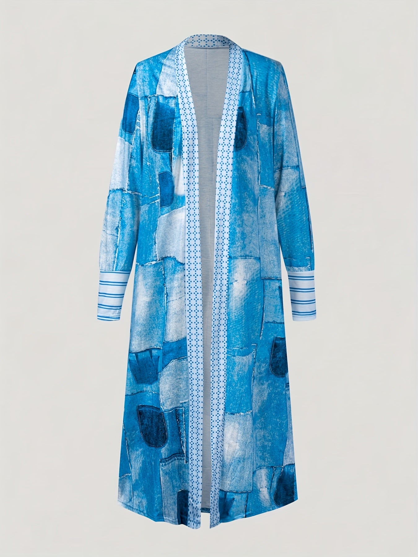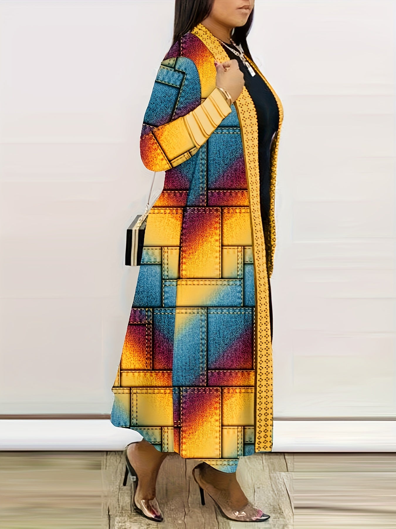 Fashion New Nuel Women's Color Block Patchwork Long Sleeve Cardigan Casual Open Front Coat Black