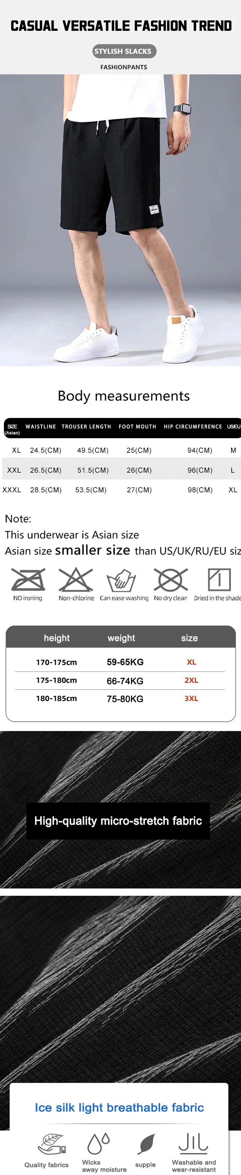 Shorts Lce Silk Shorts Men's Thin Sports Cropped Pants Loose Straight Leg Cool Breathable New Fashion Trend Casual XL-XXXL