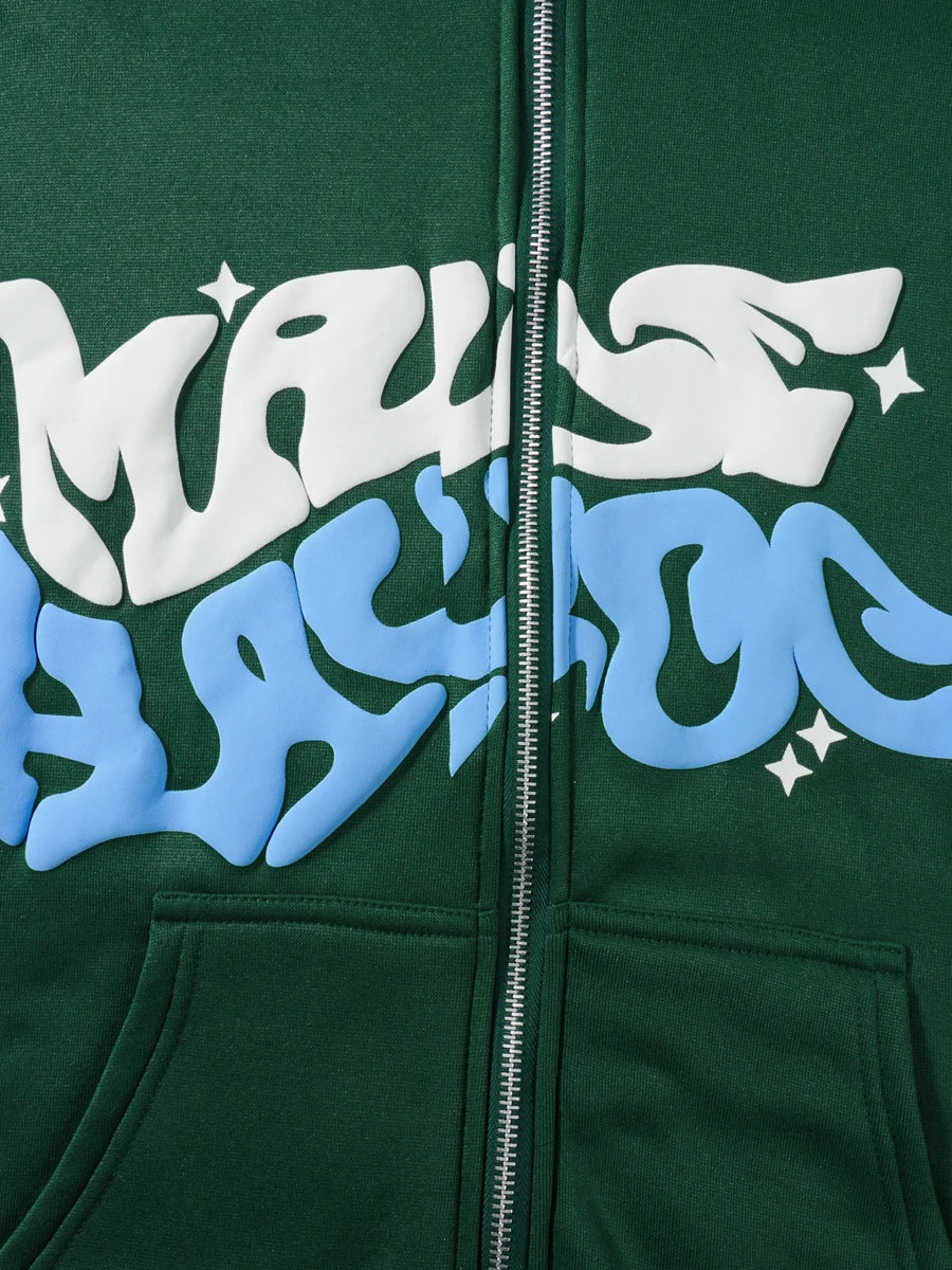 Hoodies Women Long Sleeve Letters Print Zipper Closure Sweatshirt Jacket with Pockets