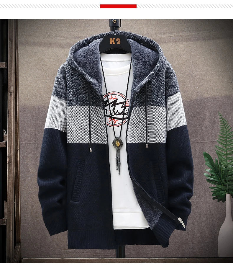 Sweater Fleece Coat Striped Jackets Fashion Hoodies Winter Autumn Thick Warm Windbreaker Pullovers Male Clothing