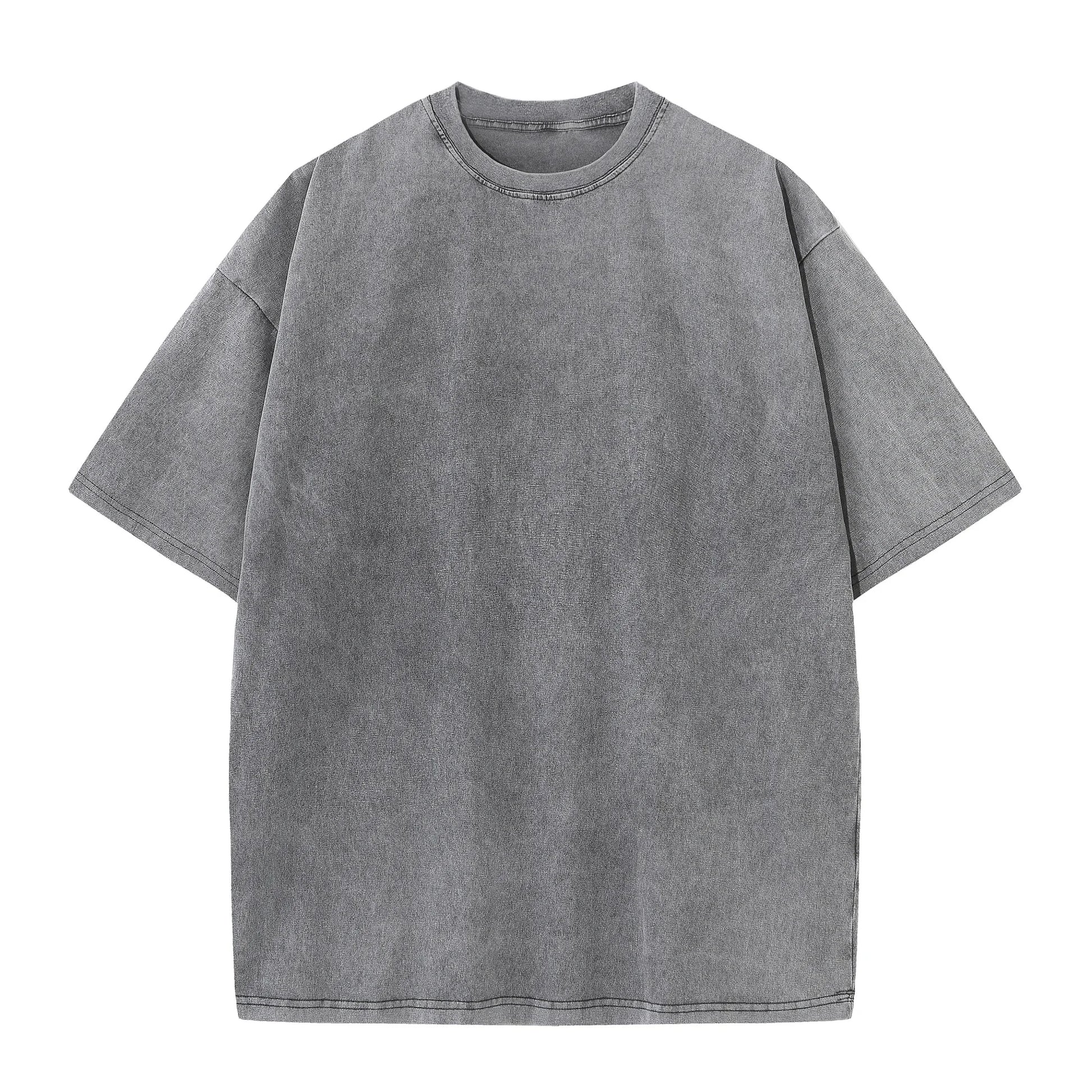 Men Short Sleeve summer pure cotton distressed retro drop shoulder T-shirt solid color loose casual breathable men's casual T-shirt tops