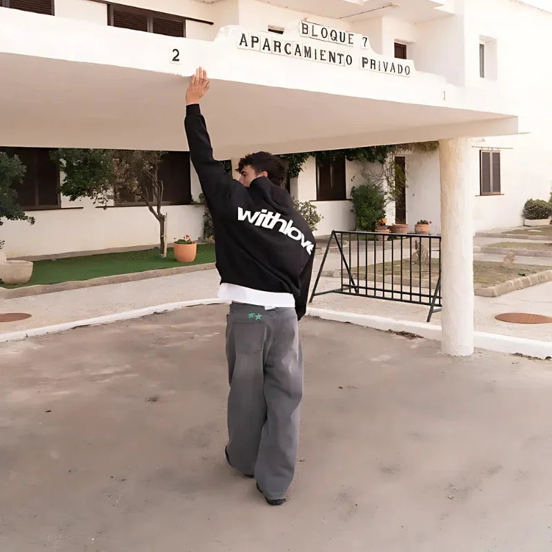 JUMPER Men's unisex loose hooded sweatshirt, soft and breathable cotton sweater with subtle letters, lazy style, casual streetwear